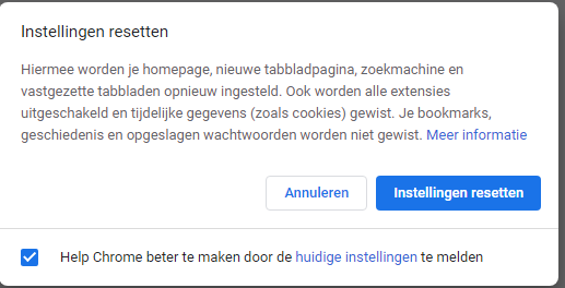 De Chrome browser is nu naar de fabrieksinstellingen gereset.